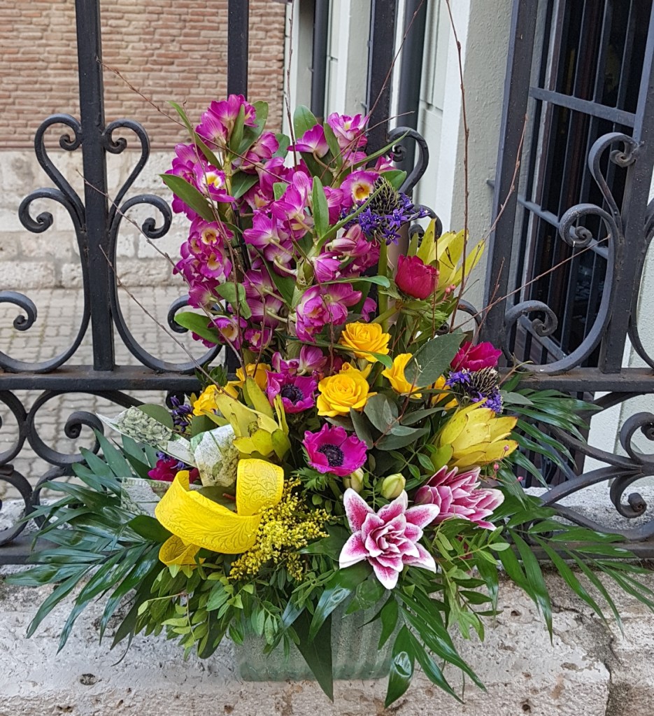 Cesta de flores y una preciosa orquídea, Dendrobium para llenarte de color.