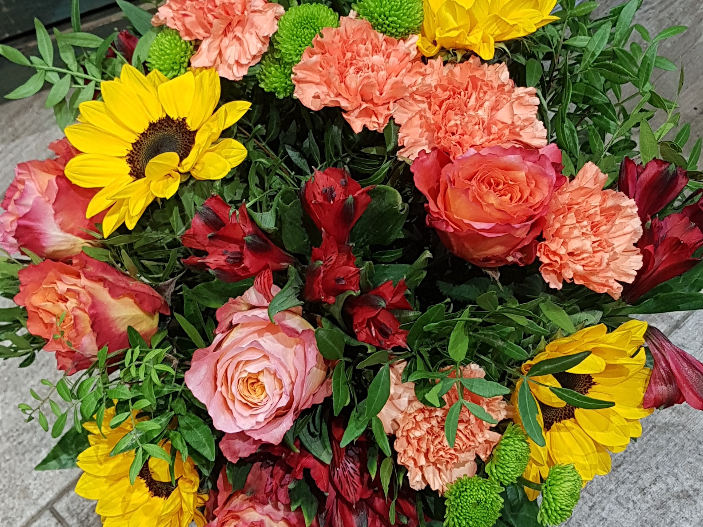 Ramo variado de colores alegres. Los girasoles tan nuestros.