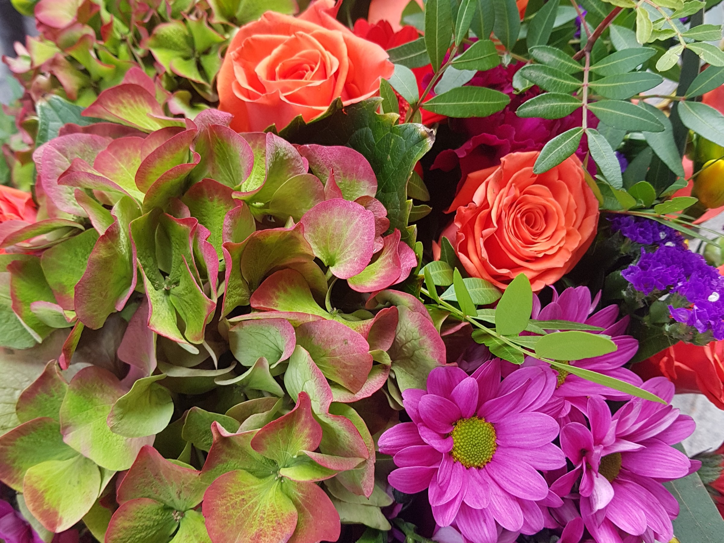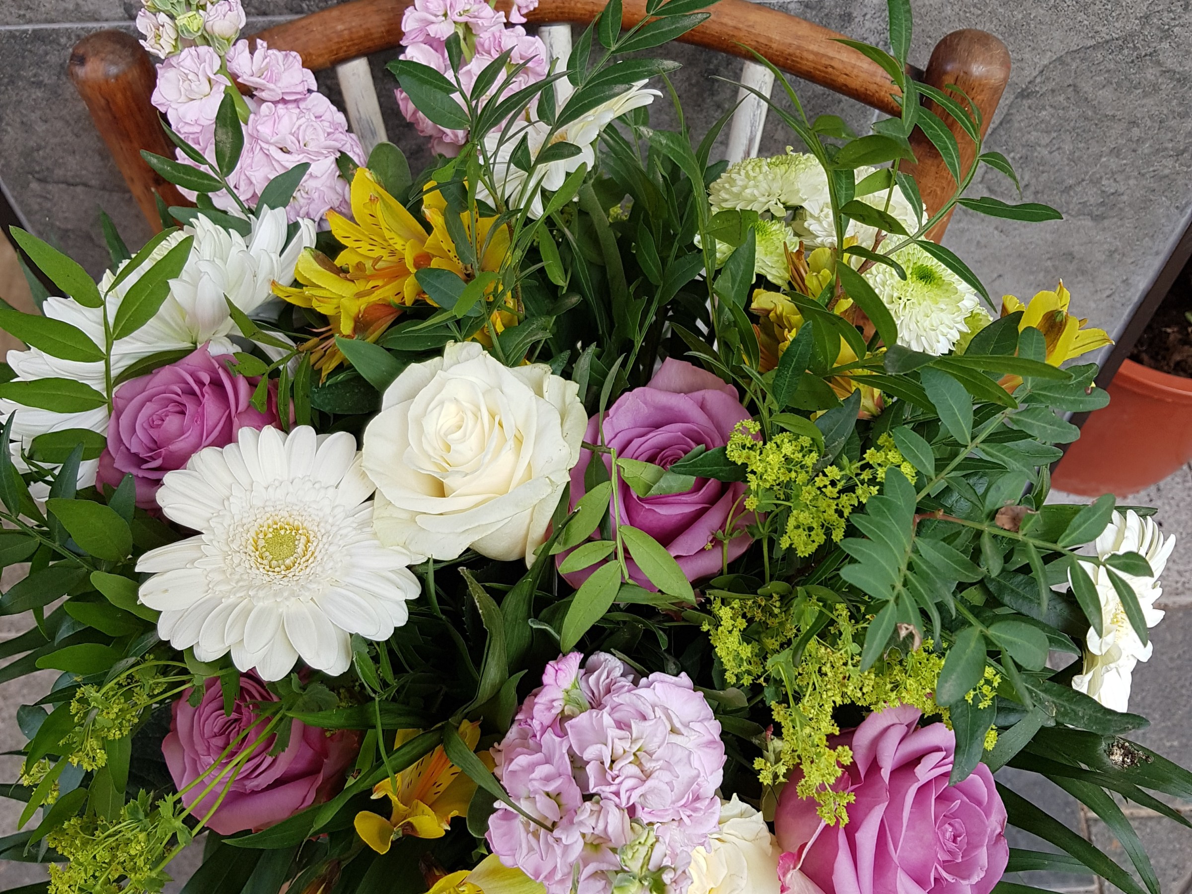Ramo de flor variada de colores alegres. Siempre un acierto. Ramo de flor variada en tonos rosas.