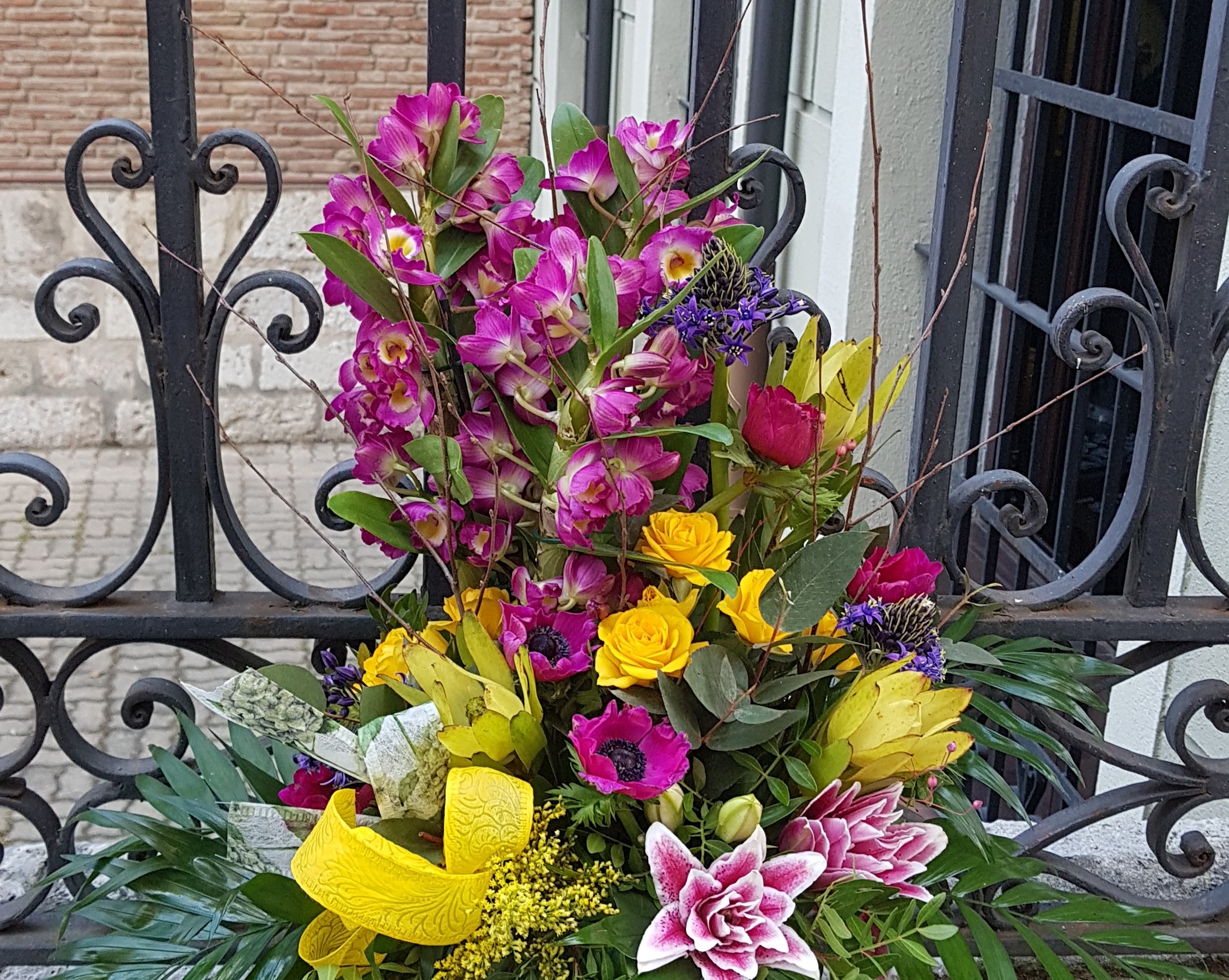 Cesta de flores y una preciosa orquídea, Dendrobium para llenarte de color.